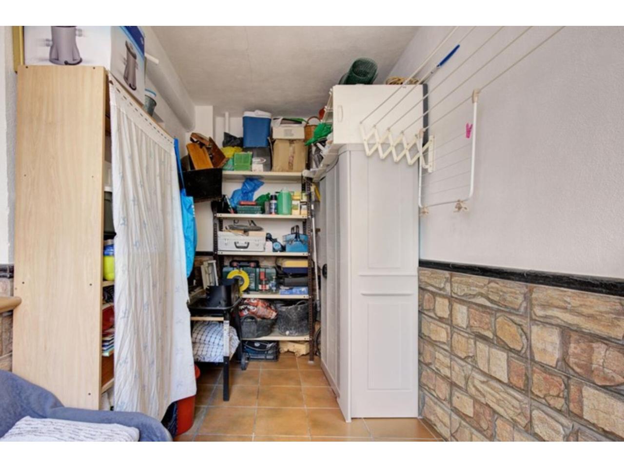Amplio recibidor Dormitorio Gran salón-cocina de estilo rústico con split frío/calor y estufa de pellet Acceso a patio y trastero Cochera con portón automático Baño completo Lavadero